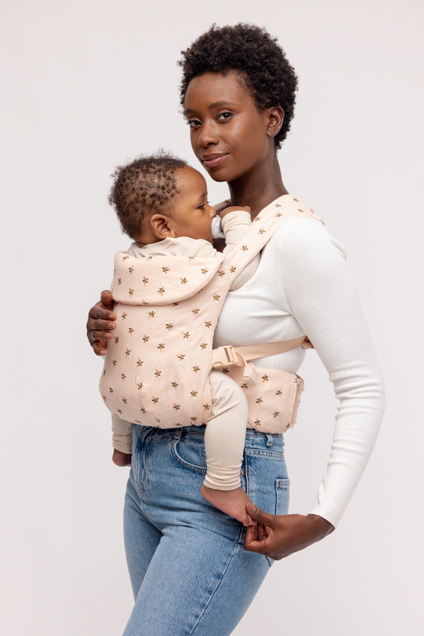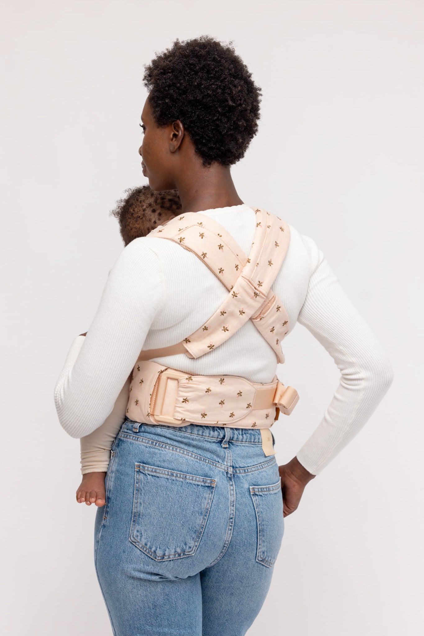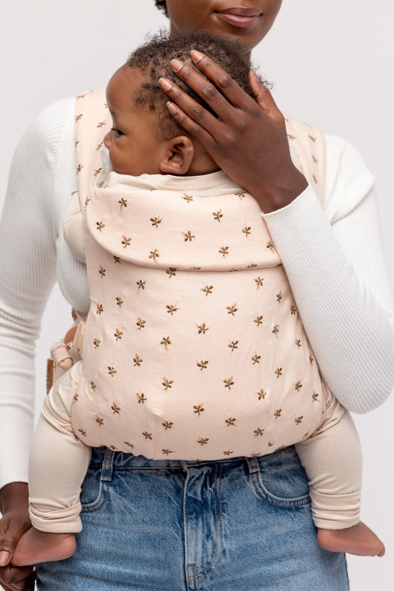 • Our Aerial Carrier is made with breathable linen and a supportive design for all-day wear. With one-of-a-kind lumbar support, padded straps, and an adjustable fit, it’s built for longer carries and growing babies.