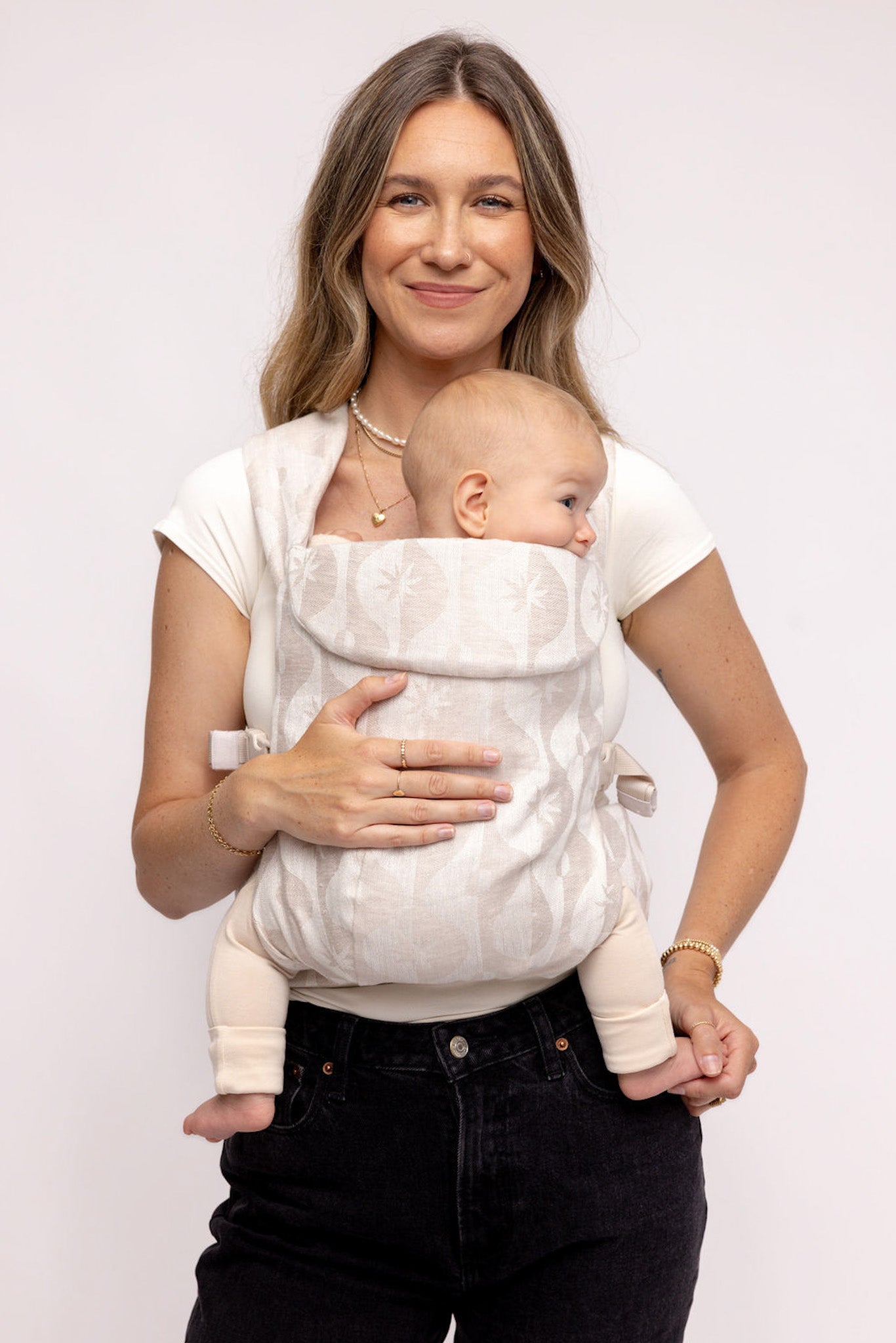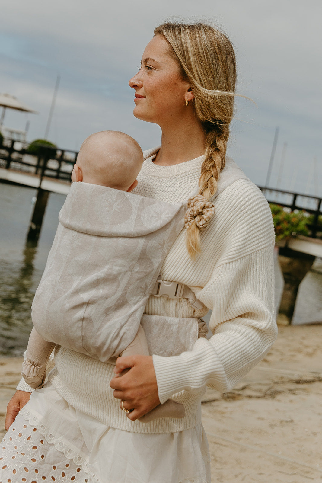 • Our Aerial Carrier is made with breathable linen and a supportive design for all-day wear. With one-of-a-kind lumbar support, padded straps, and an adjustable fit, it’s built for longer carries and growing babies.