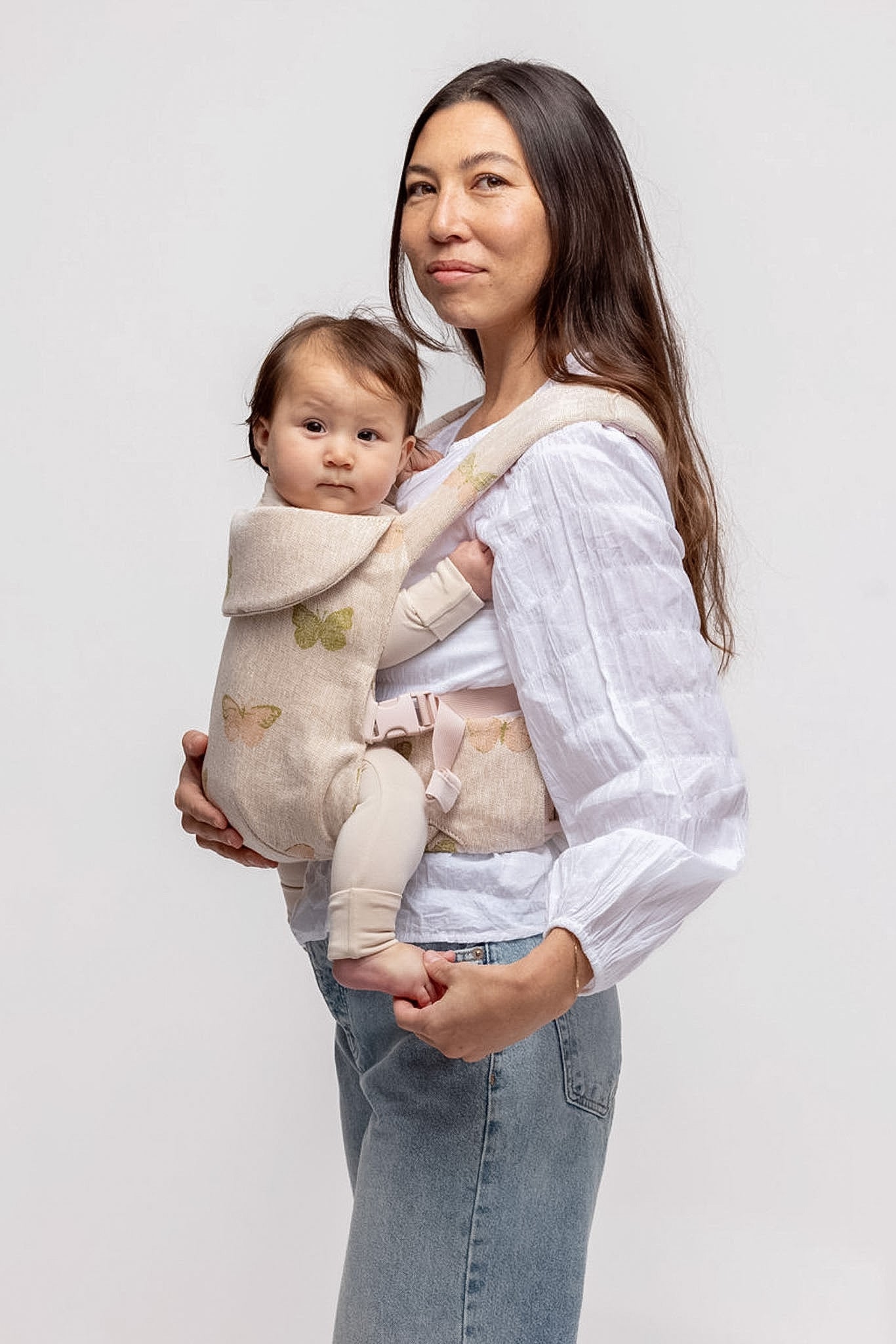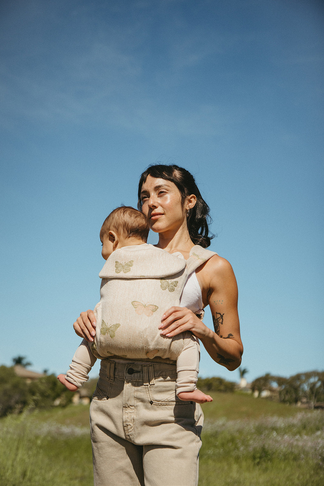 • Our Aerial Carrier is made with breathable linen and a supportive design for all-day wear. With one-of-a-kind lumbar support, padded straps, and an adjustable fit, it’s built for longer carries and growing babies.